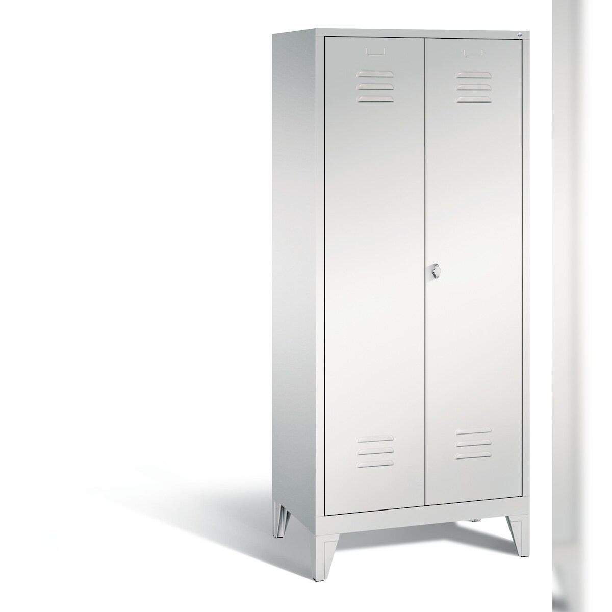 C+P Spind Classic mit Füßen | 2 Abteile mit verkürzte Mitteltrennwand & 4 Fachböden | HxBxT 185x40x50cm | Lichtgrau von PROREGAL