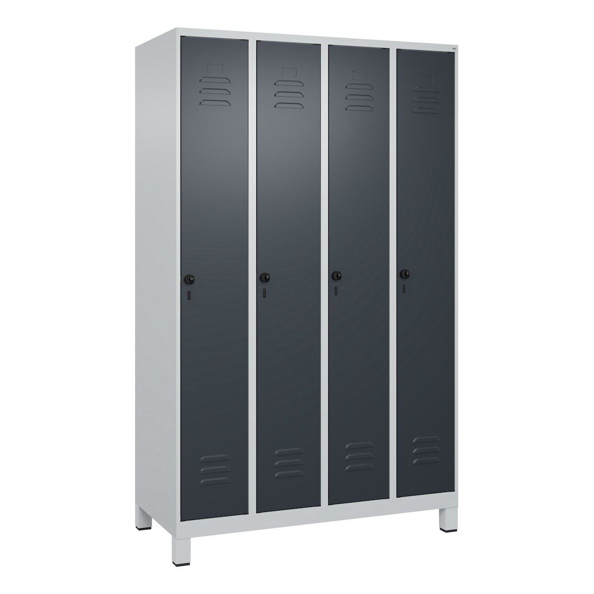 C+P Spind Classic PLUS, Füßen, 4 Abteile, HxBxT 195x120x50cm, Sicherheitsdrehriegel, Hellgrau/Anthrazit von PROREGAL