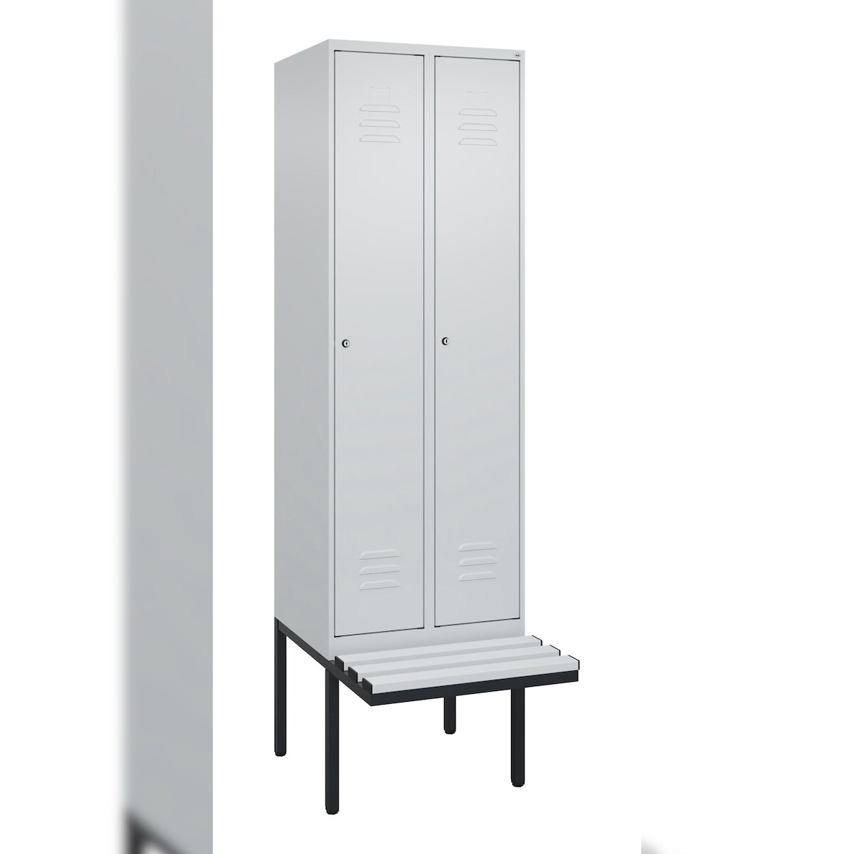 C+P Spind Classic PLUS, Kunststoff schwebende Sitzbank, 2 Abteile, HxBxT 212x60x82cm, Zylinderschloss, Hellgrau/Hellgrau von PROREGAL