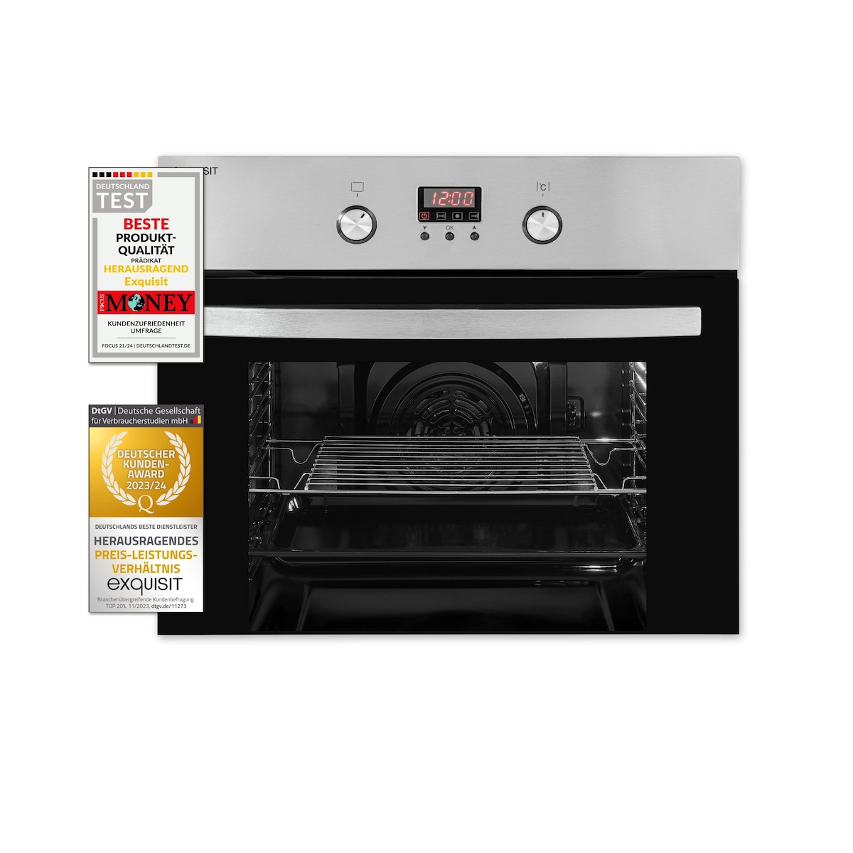 Exquisit EBE 65-1H Einbaubackofen | 58 Liter Backofenvolumen | Heißluft | Timer | versenkbare Knebel | Edelstahl