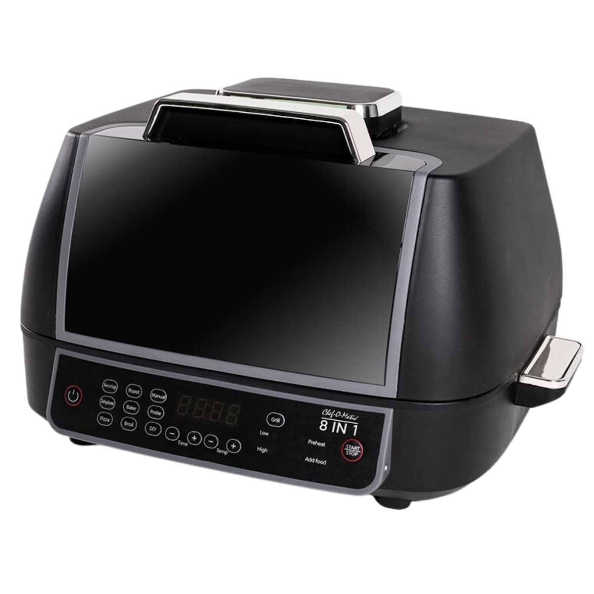 Industex Chef O Matic 8in1 Air & Grill - Heißluftfritteuse, 1500 Watt, 8 Programme, Timer: 1-240 min., Sonderprogramm: Dörren, 50°C - 205°C, Grill, schwarz
