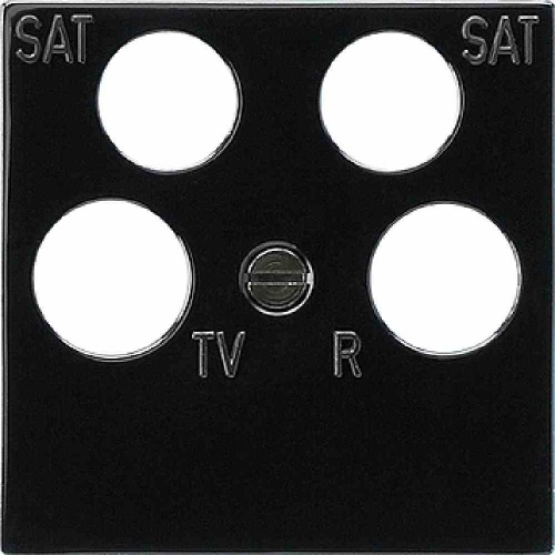 Gira System 55 Zentralplatte, Sat/TV/Radio, 4f, schwarz, Befestigung mit Schraube, mit Aufdruck, ohne Beschriftungsfeld, 025910