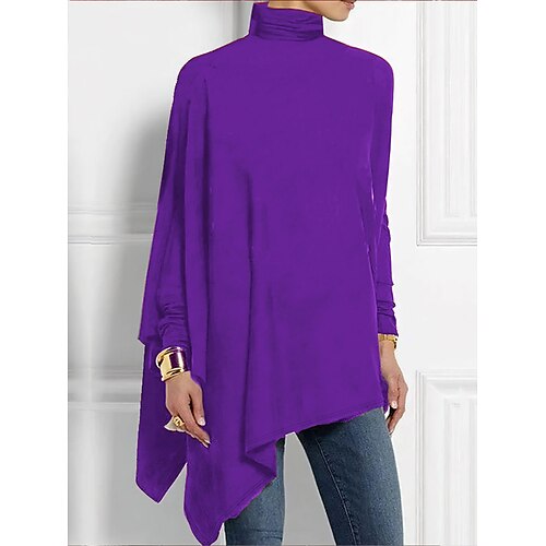 Damen T-Shirt Uni Elegant Mode Lässig Lange Ärmel Rollkragen Lange Tops Täglich Asymmetrisch Schwarz Rot Blau Lila Grün Herbst Winter