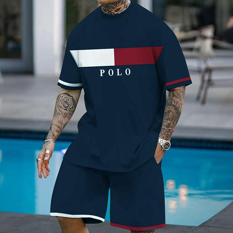 Men's Graphic 2pcs Tees sets Summer Tops Short Sleeve Short Pants Crew Neck Sport Casual Outdoor Vacation Sport 3D Print Summer Black Blue Green
