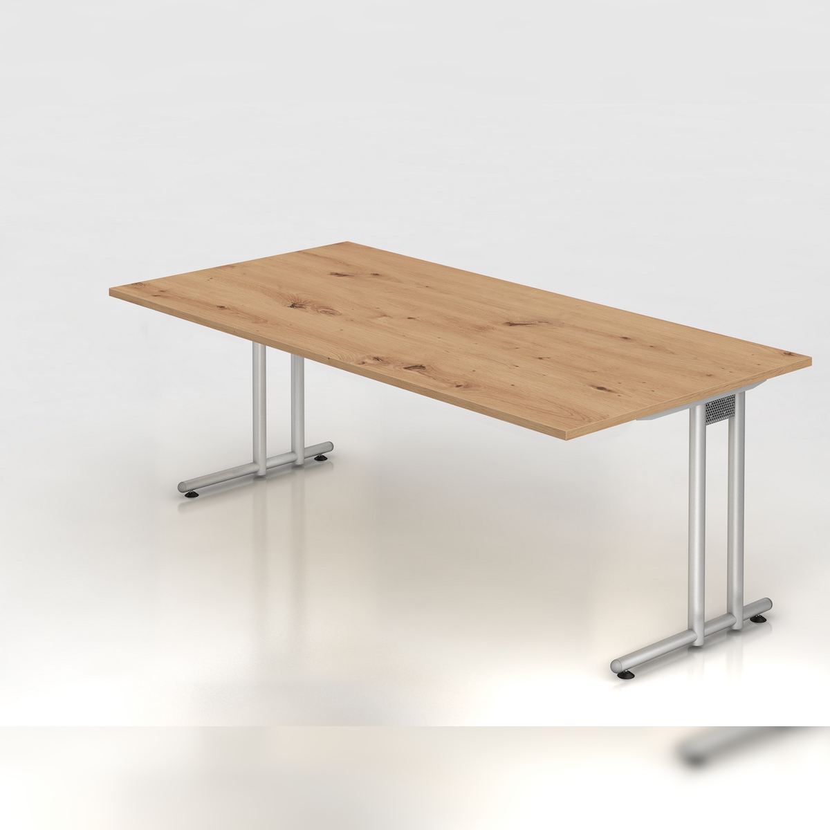PROREGAL Schreibtisch Mauno | Asteiche | BxT 200x100cm | Arbeitshöhe 72cm | höhenjustierbar 0-10 mm | C-Fuß-Gestell Silber | Bürotisch