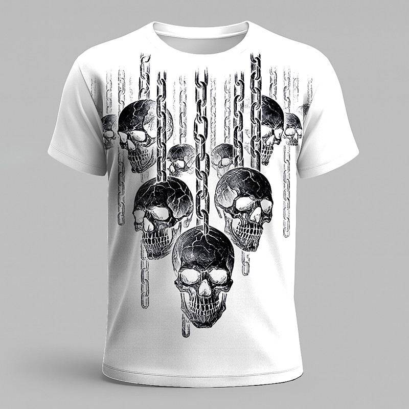 Men's Skull Optical Illusion 3D T Shirt Short Sleeve T shirt 3D Print Crew Neck Shirt Exaggerated Designer Horror Party Street Holiday Black White Summer Spring All Seasons Clothing Apparel S M L XL