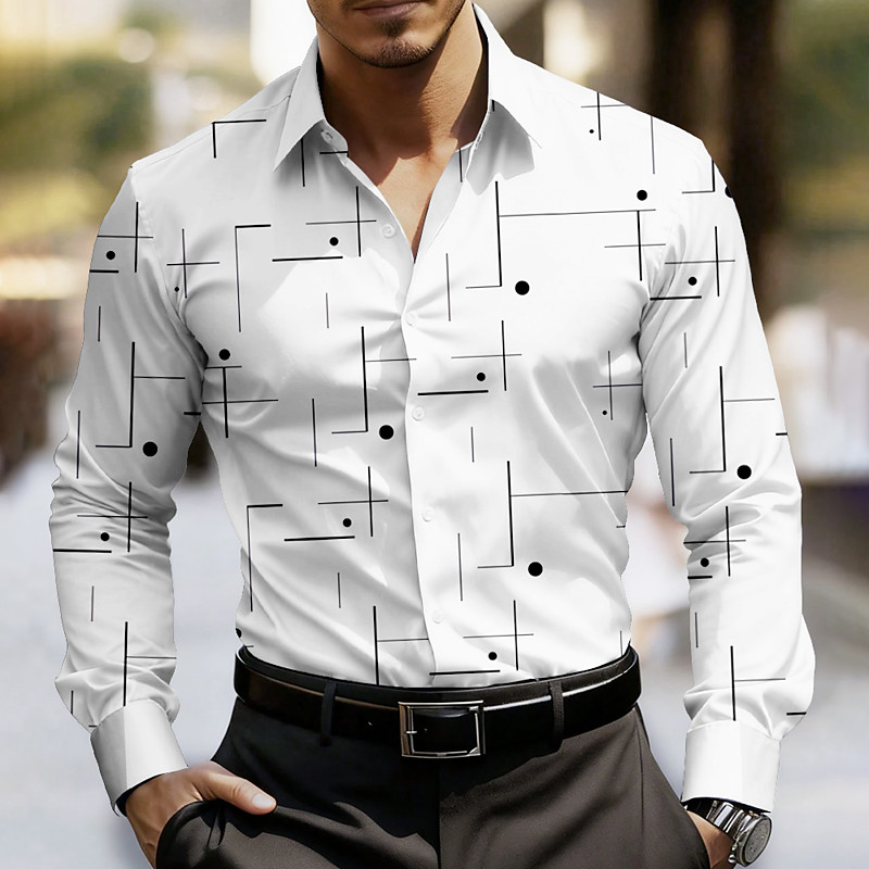 Men's Geometric Round Dots Abstract Art Shirt Button Up Shirt Long Sleeve Fashion Casual Outdoor Dailywear Spring Fall Turndown 3D Print Collared Shirts Blue White Green Gray