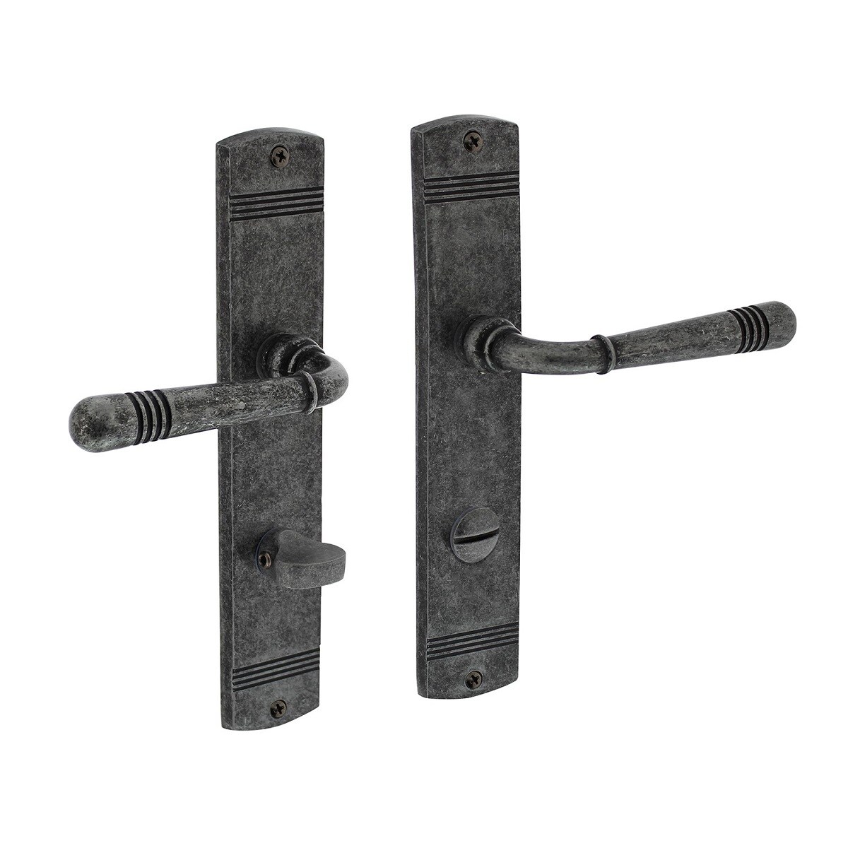 MS Beschläge Schildgarnitur Türbeschlag Antik Grau Türdrücker Langschild WC DIN Norm 8-78mm