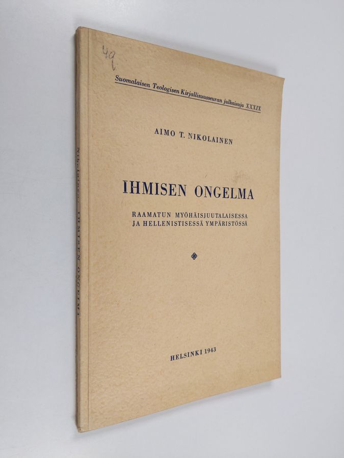 Aimo T. Nikolainen : Ihmisen ongelma Raamatun myöhäisjuutalaisessa ja hellenistisessä ympäristössä