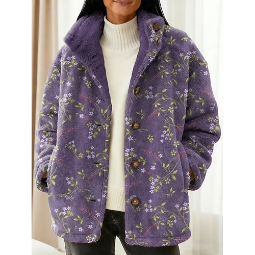 Per donna Cappotto Invernale Caldo Confortevole Bottoni Vintage Moda Classico Moderno Floreale Formale Vacanza Casa Casuale Corto Regolare Collo alla coreana Vestibilità regolare Manica Lunga