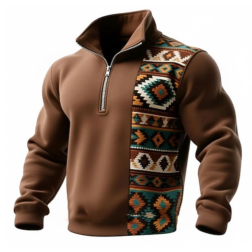 Per uomo Geometrico Plaid Tribale Felpa Sport Moda Casual Con cerniera Casa Abbigliamento casual alla moda Lavoro Feste Blu Viola Marrone Verde Autunno Tutte le stagioni progettista S M L XL XXL XXXL