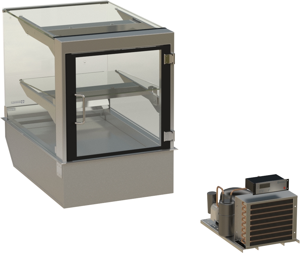 Showcase "Stockholm" eckig, für 1 KB, 2 Auslagen 530x510/200x792mm (BxHxT), Drehtür rechts steckerfertig mit Schnellkupplung