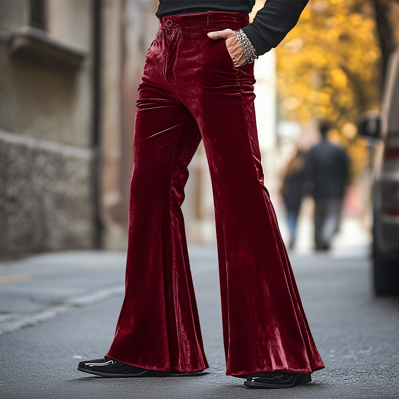 Retro Vintage 1970s Trousers Bell Bottom Pants Flared Trousers Hippie Disco Solid Color Fancy Dress Men's Halloween Carnival Party Dailywear Pride Parade Adults' Pants