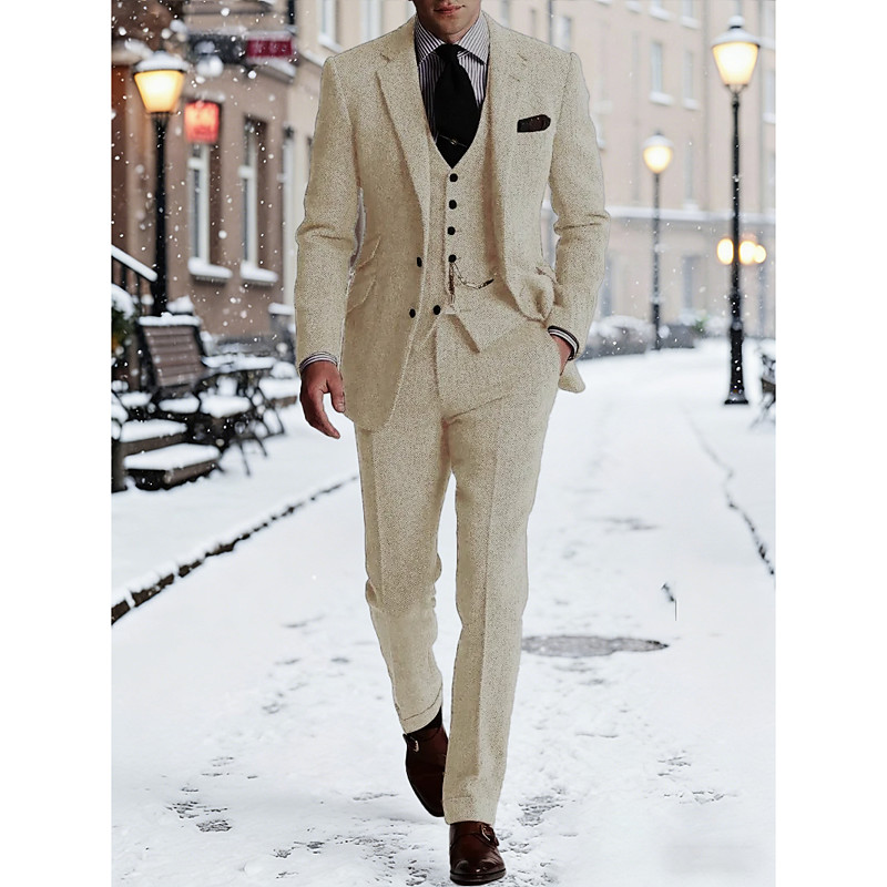 Men's BlazerVestDress Pants Blazer Business Work Wedding Fashion Streetwear Fall Winter Terylene Solid Color 3-Piece Single Breasted Blazer Black Champagne Pink Burgundy
