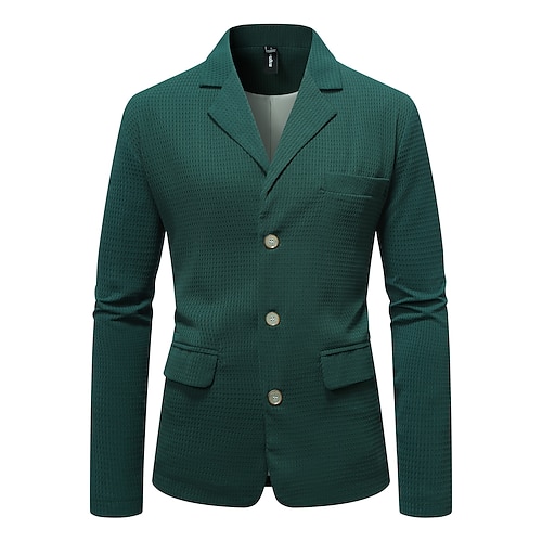 giacca blazer da uomo, colletto a lancia, moda classica casual, scozzese, tinta unita, blazer waffle, nero, azzurro cielo, marrone, vestibilità su misura, monopetto, tre bottoni