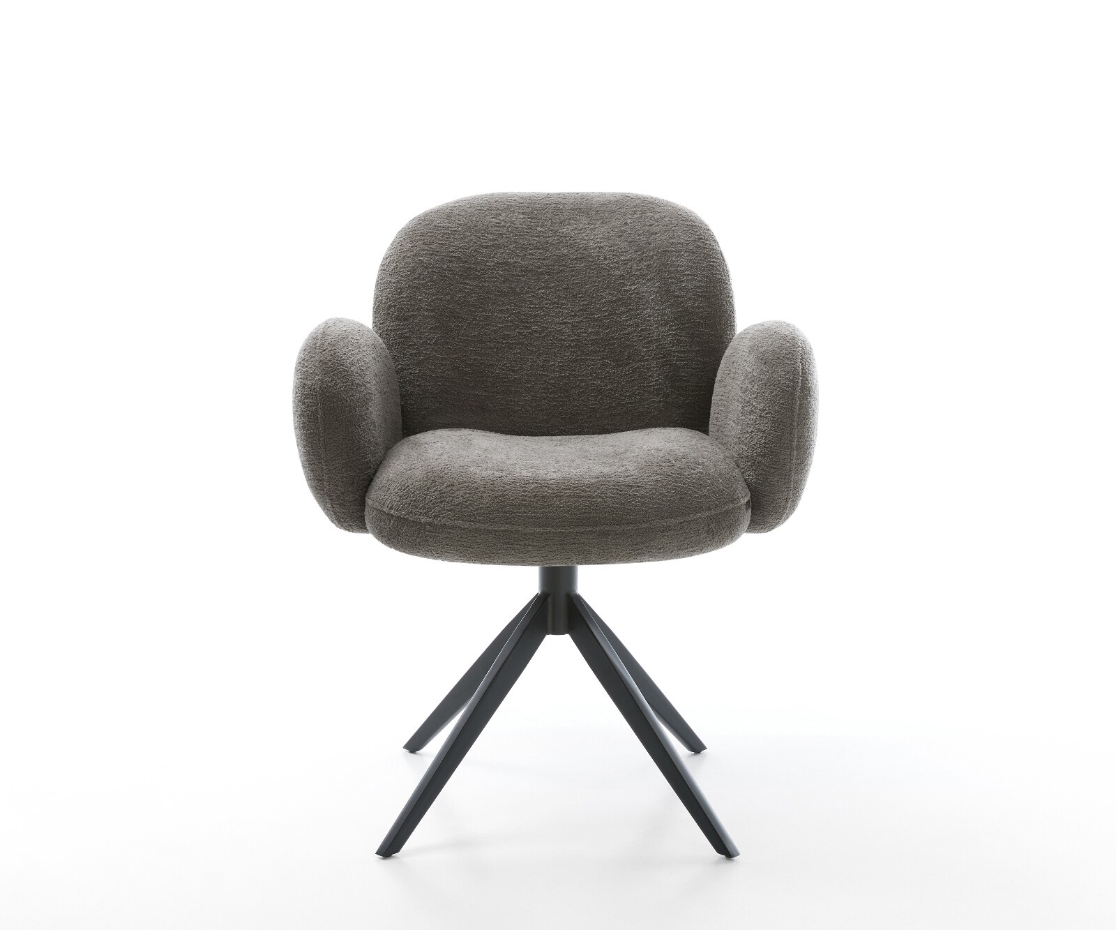 DELIFE Draaistoel Yago-Flex met armleuning bouclé zacht mud kruisframe breed zwart 360° draaibaar rocker-functie pocketveer kern