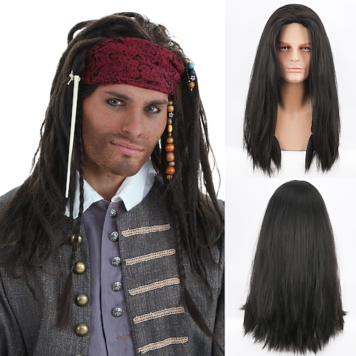 Parrucche Cosplay Nero Riccio Capelli Sintetici Lungo Parrucche Per uomo Parrucche Per la festa