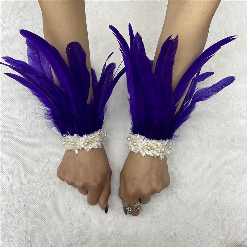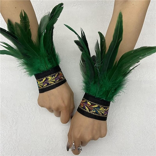 Carnival 2026Rio Carnival Samba Accessories Women's Green Feather Wrist Cuffs with White Pearl Lace Brazil Festival Performance Costume