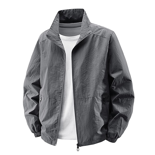 Herren Leichte Jacke Freizeitjacke Outdoor Urlaub Warm Reißverschluss Tasche Herbst Winter Einfach Mode Streetwear Stehkragen Regulär Schwarz Khaki Armeegrün Dunkelblau Grau Jacken