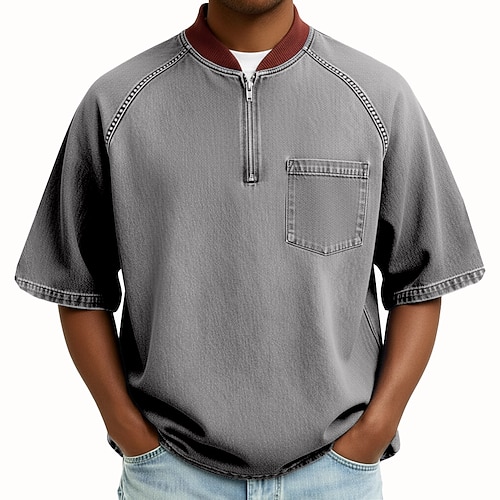 Per uomo Maglietta Manica Corta Senza colletto Il giro Estate Tutte le stagioni Tinta unica Quotidiano Casual Stile da Strada Cerniera Oversize Ampio All'aperto Streetwear Casual Blu chiaro Nero