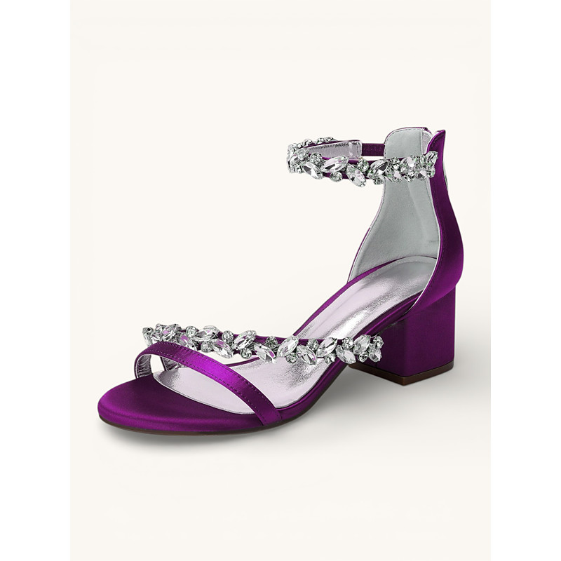 Women's Purple Strappy Satin Dance Heels with Glitter Accents - Professional Gatsby Party Ballroom Shoes