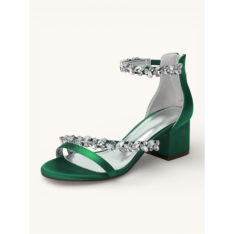 Champagne Bridesmaid Heels for Women – Open Toe Block Heel Wedding Sandals with Crystal Embellished Straps, Elegant Bridal Party Shoes