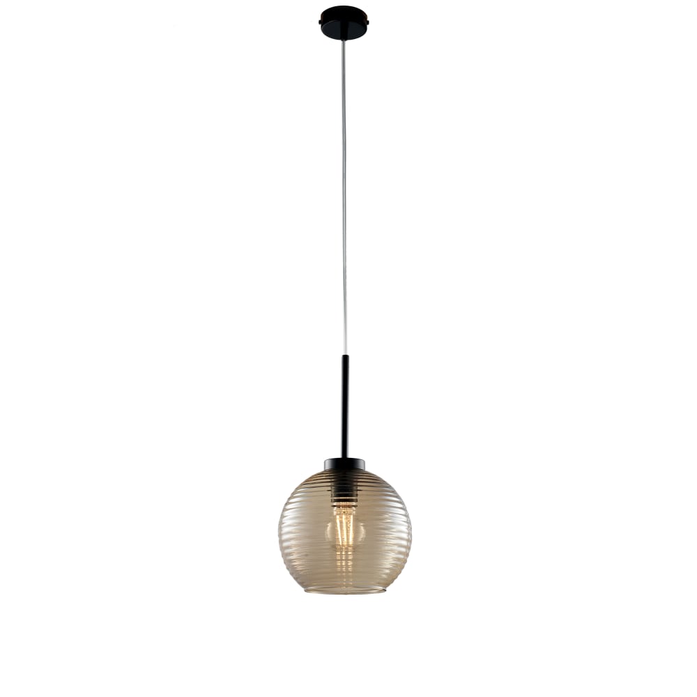 Sospensione Moderna 1 Luce Ferro Nero Vetro Soffiato Ambra