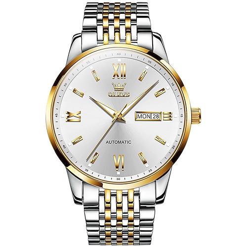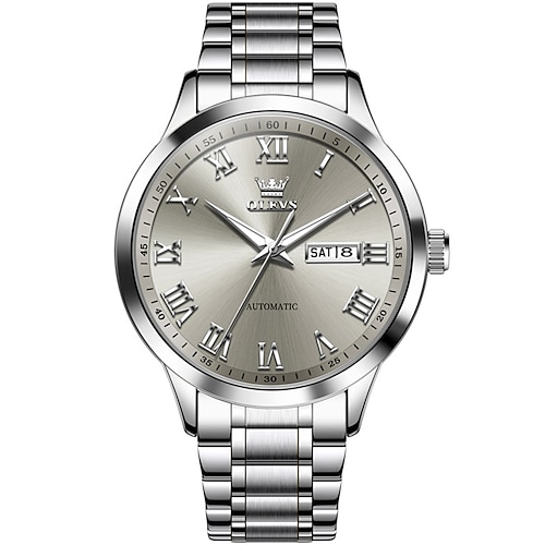 OLEVS Herren Mechanische Uhr Minimalistisch Mode Geschäft Armbanduhr Automatische Selbstaufzug leuchtend Kalender Datum Woche Stahl Beobachten