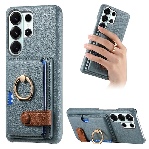Handy Hülle Handyhüllen Für Samsung Galaxy S26 Ultra Plus S25 S24 S23 S22 Plus Ultra S23 FE A55 5G A35 5G A25 A15 Rückseite Ringhalter mit Trageriemen Kartenfach Retro TPU Metall PU-Leder