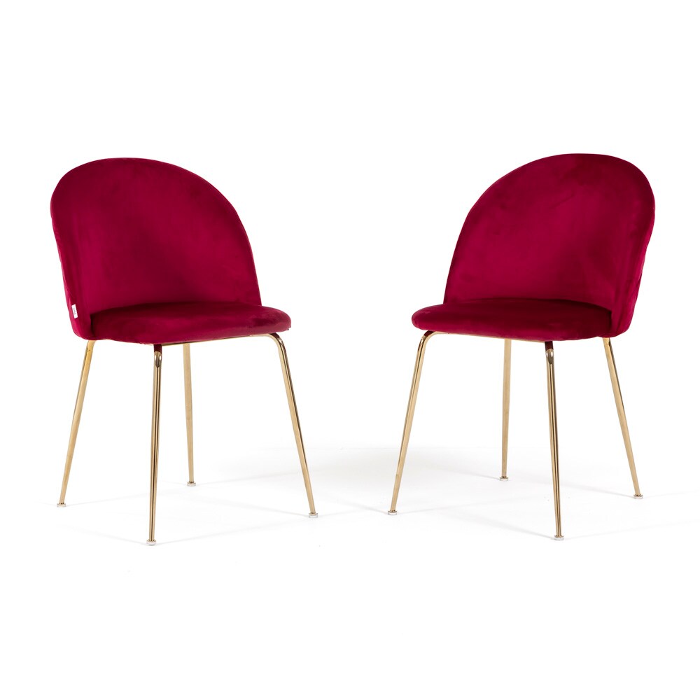 RATTATAN Set aus 2 Innenstühlen aus Samt, gepolstert, mit Metallbeinen, elegantes Design für Küche, Esszimmer, Bar und Restaurant – Sara – Amarena/Gold