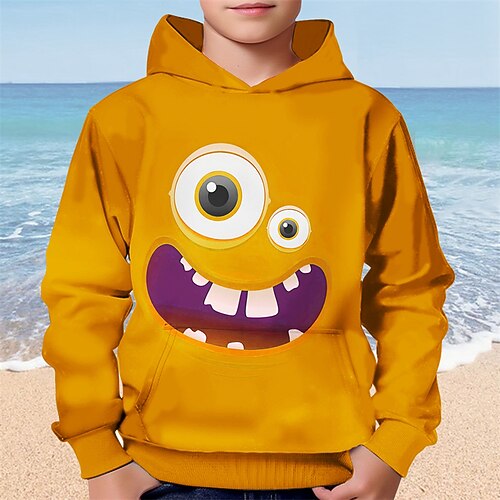 Jungen Cartoon Lustiges Lächeln Gesicht Hoodie Langarm 3D Druck Herbst Winter Mode Streetwear Kinder 4-12 Jahre Mit Kapuze Outdoor Casual Täglich Normale Passform