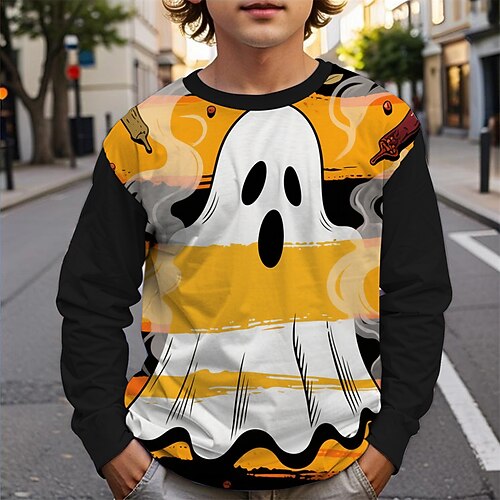 Halloween Jungen 3D Geist T-Shirt Langarm Frühling Herbst Mode Basic Kinder 4-12 Jahre Rundhalsausschnitt Outdoor Lässig Täglich Normale Passform