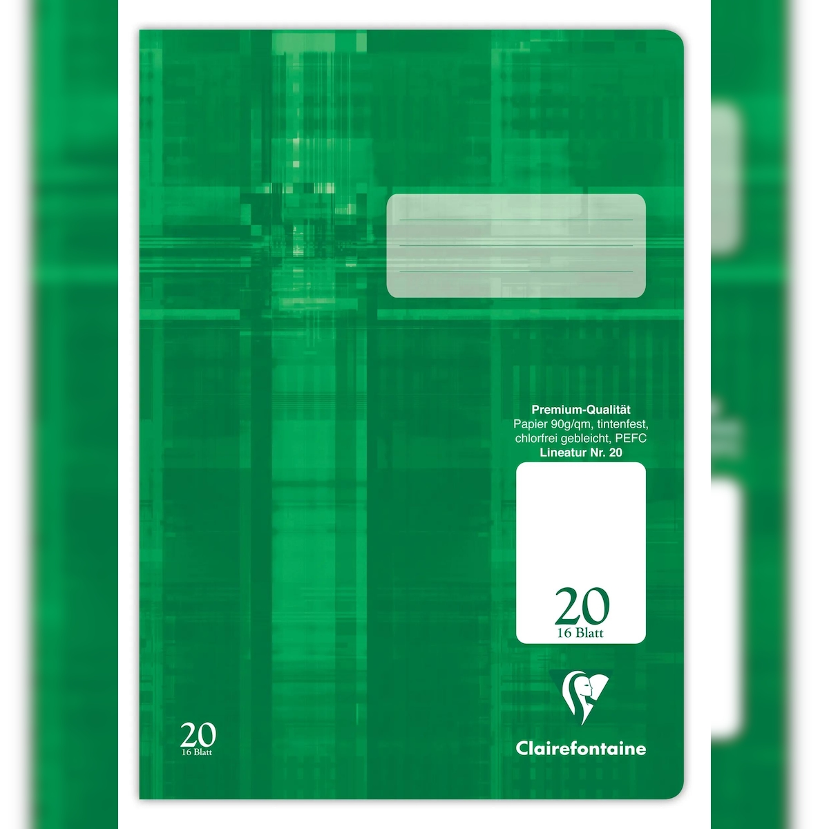 Clairefontaine 25x Schulheft Clairefontaine, DIN A4, 32 Blatt, 90g, Lineatur 20 blanko - Grün 331620C
