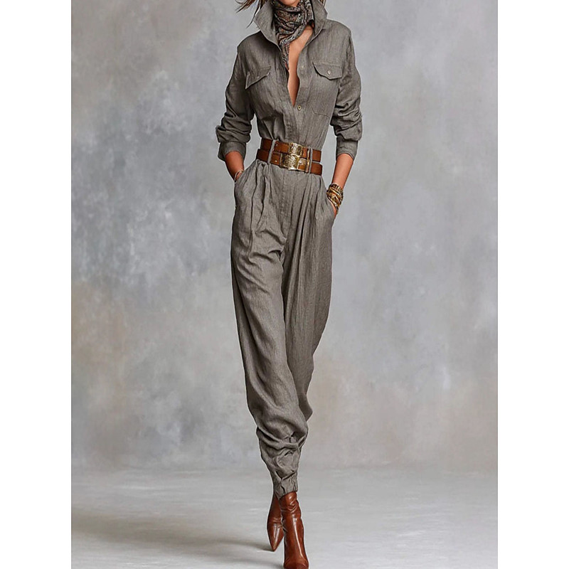Women's Normal Jumpsuit Elegant Solid Color Long Sleeve Shirt Collar Pocket Buttons Daily Home Regular Fit Gray Spring