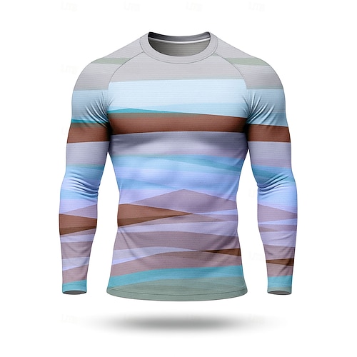 Herren Kompressionsshirt Laufshirt 3D-Druck Langarm Basisschicht Gestreift Schnelltrocknend Kompression Power Flex Feuchtigkeitsableitend Fitnesstraining Aktives Training Übung Sportbekleidung
