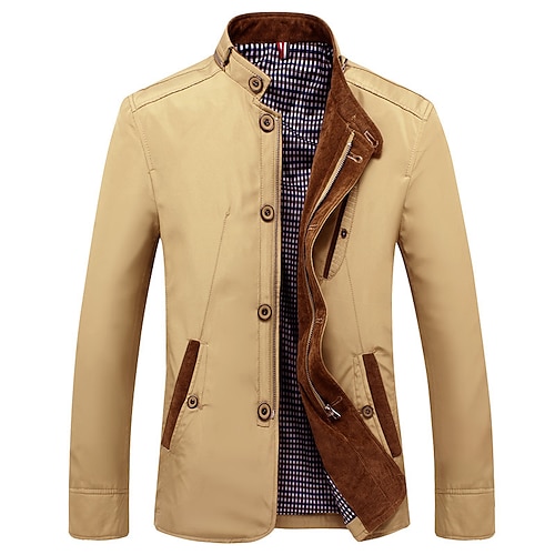 Per uomo Giacca utility Giacca di transizione Quotidiano Giacca a Vento Tasca Tutte le stagioni Semplice Classico Collo alla coreana Regolare Blu reale Cachi Giacca