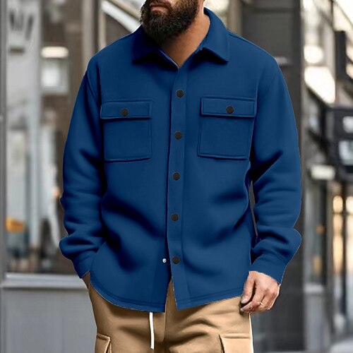 Per uomo Giacca Camicia Giacca Casual Vacanza Quotidiano Caldo Tasca Autunno Inverno Semplice Moda Classico Bavero Regolare Nero Vino Blu reale Cachi Grigio chiaro Giacca
