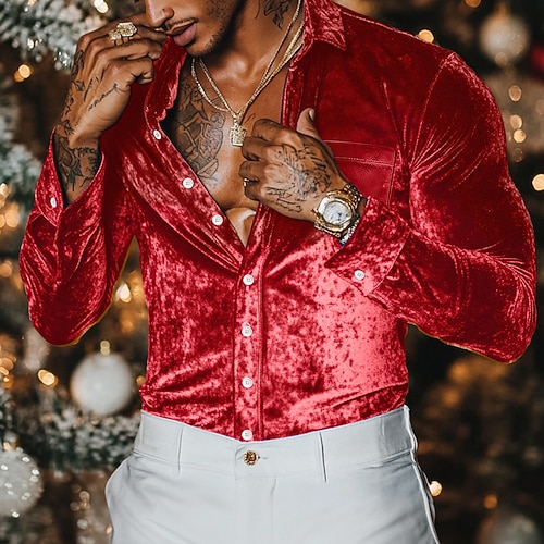 Per uomo Camicia Camicia di Natale Giallo Vino Blu reale Verde Manica Lunga Vacanza Feste Abbigliamento Elegante Casual Di tendenza