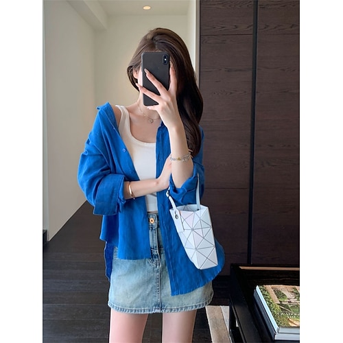 Per donna Blusa Semplice Elegante Casual Manica Lunga Colletto a Camicia Top lunghi Quotidiano Bottoni Blu Bianco Rosa Blu Reale Estate Primavera