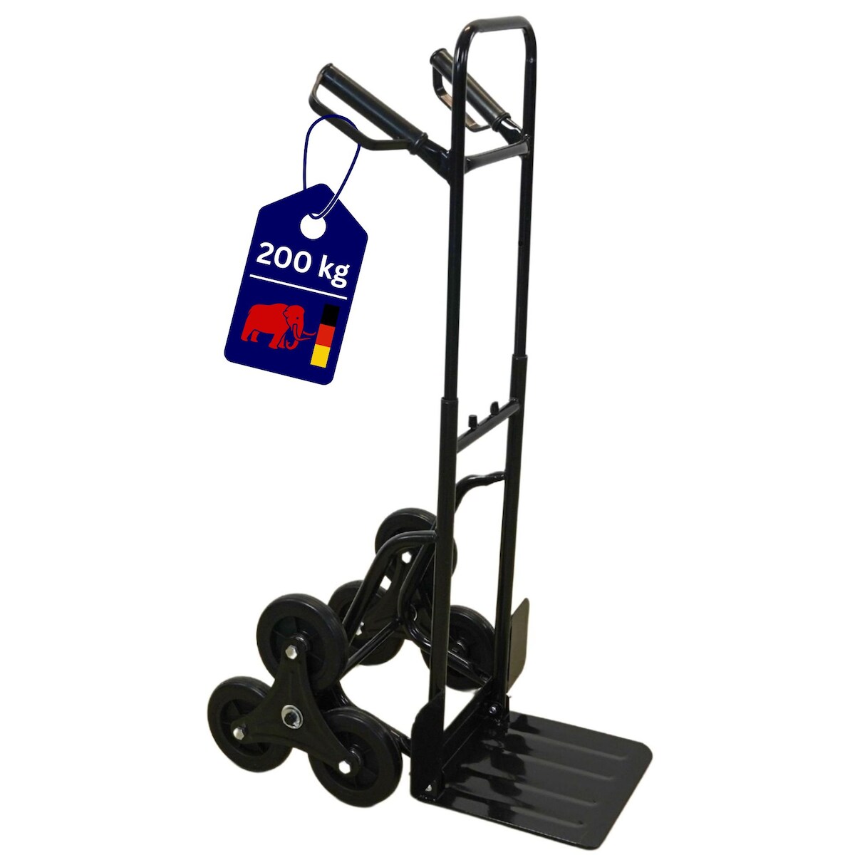 PROREGAL Treppensackkarre ODIN HxBxT 111x60x43cm Tragkraft 200kg Hartgummi-Bereifung Stahlrahmen Schwarz Transportkarre Staplerkarre klappbar