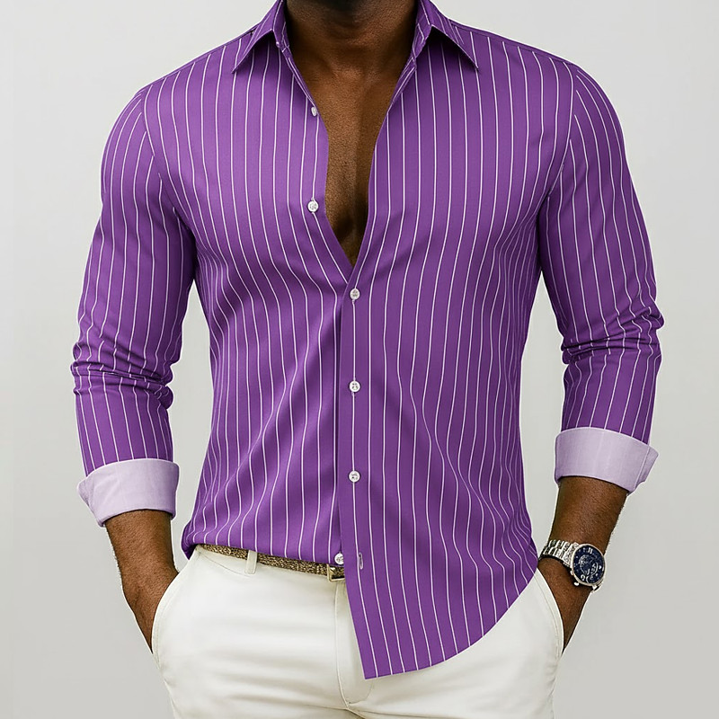 Men's Striped Shirt Button Up Shirt Casual Dress Shirt Long Sleeve Fashion Casual Office Dailywear Spring Fall Turndown 3D Print Linen Like Shirt White Pink Blue Purple Green