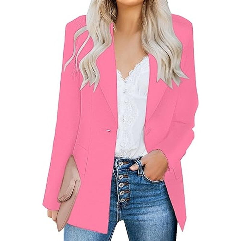 Women's Casual Blazers Long Sleeve Lapel Button Slim Work Office Blazer Jacket (Pink, XL)