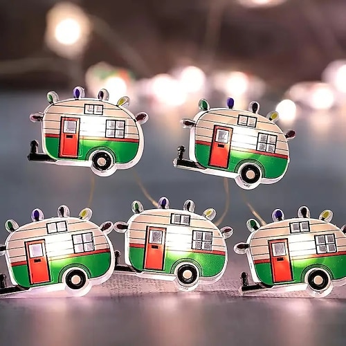 Luci natalizie a forma di camper, 2 m, 20 LED, alimentate a batteria, luci in filo di rame, decorazioni per la casa, feste di Capodanno