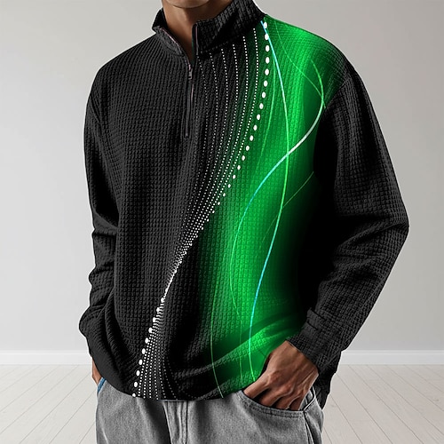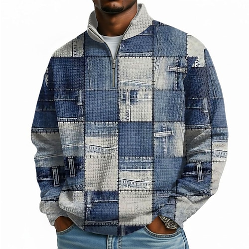 Per uomo Geometrico Plaid Nido d'ape Felpa Moda Quotidiano Classico Casual Collo alla coreana Zip a un quarto All'aperto Casa Ufficio Lavoro Blu Viola Verde Cachi Con zip Autunno Inverno progettista