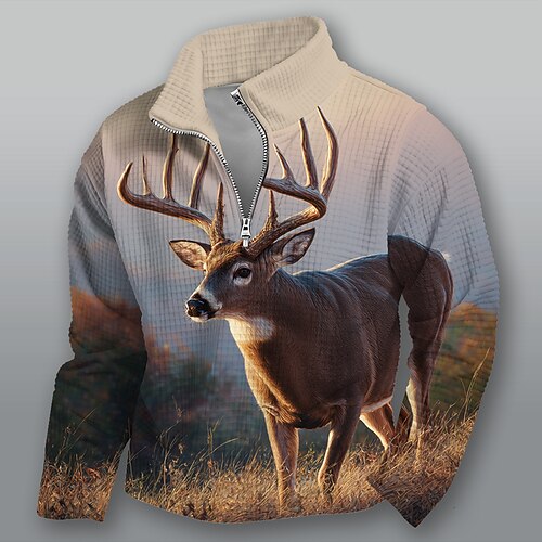 Per uomo Cervo Felpa Moda Quotidiano Casual Da caccia Collo alla coreana Zip a un quarto All'aperto Casa Ufficio Lavoro Marrone Cachi Grigio Con zip Autunno Inverno progettista S M L XL XXL XXXL