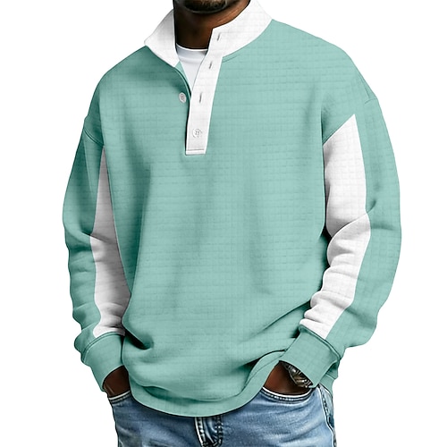Per uomo Blocco di colori Gradiente di Colore Nido d'ape Felpa Moda Quotidiano Casual Collo Alto Casa All'aperto Abbigliamento casual alla moda Ufficio Blu Viola Verde Blu scuro Bottoni Autunno