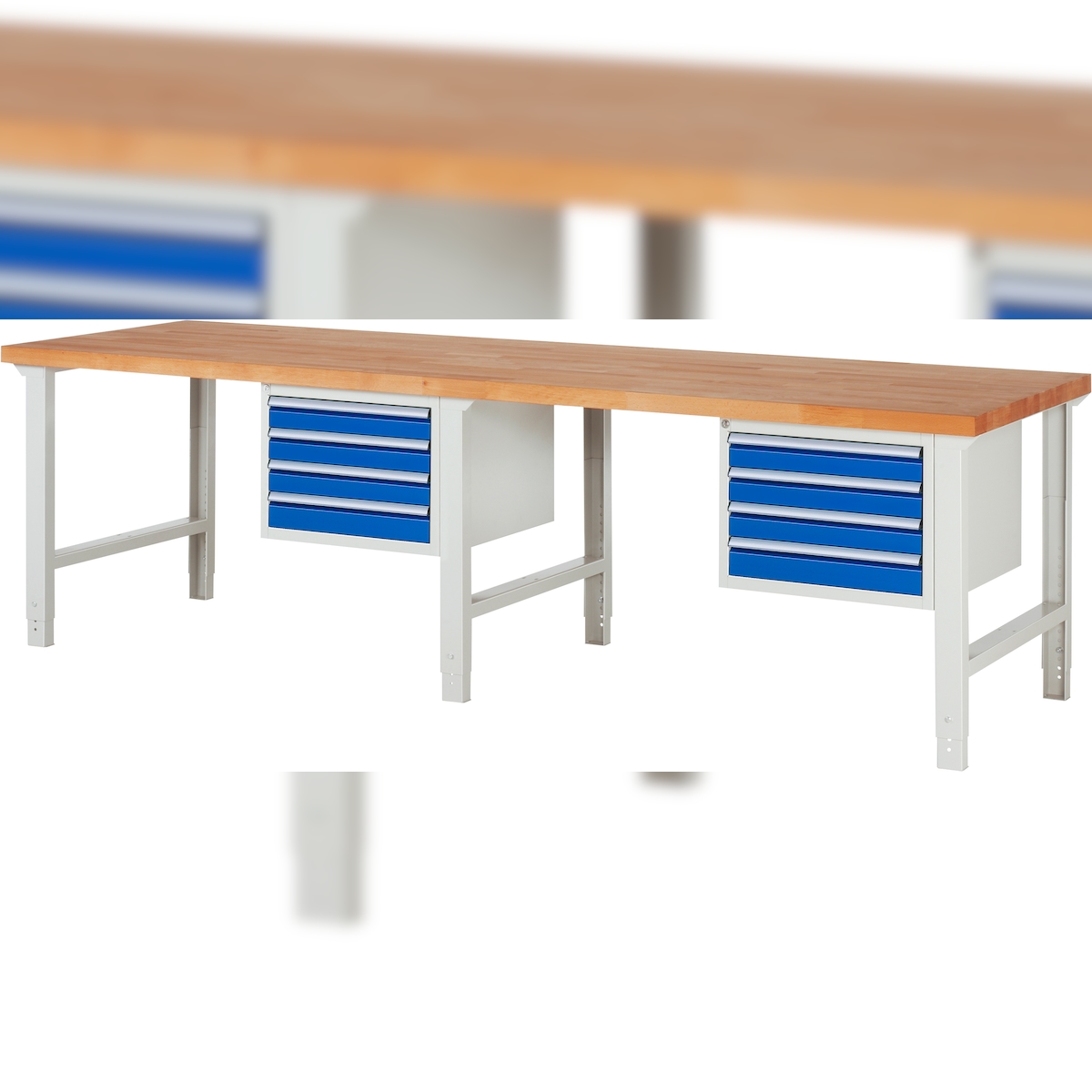 PROREGAL Werkbank Serie 7000 - Modell 7133 | HxBxT 79-114x300x90cm | 8x Schublade | Schubladenmaße 8x90mm | Lichtgrau | Arbeitstisch Werktisch