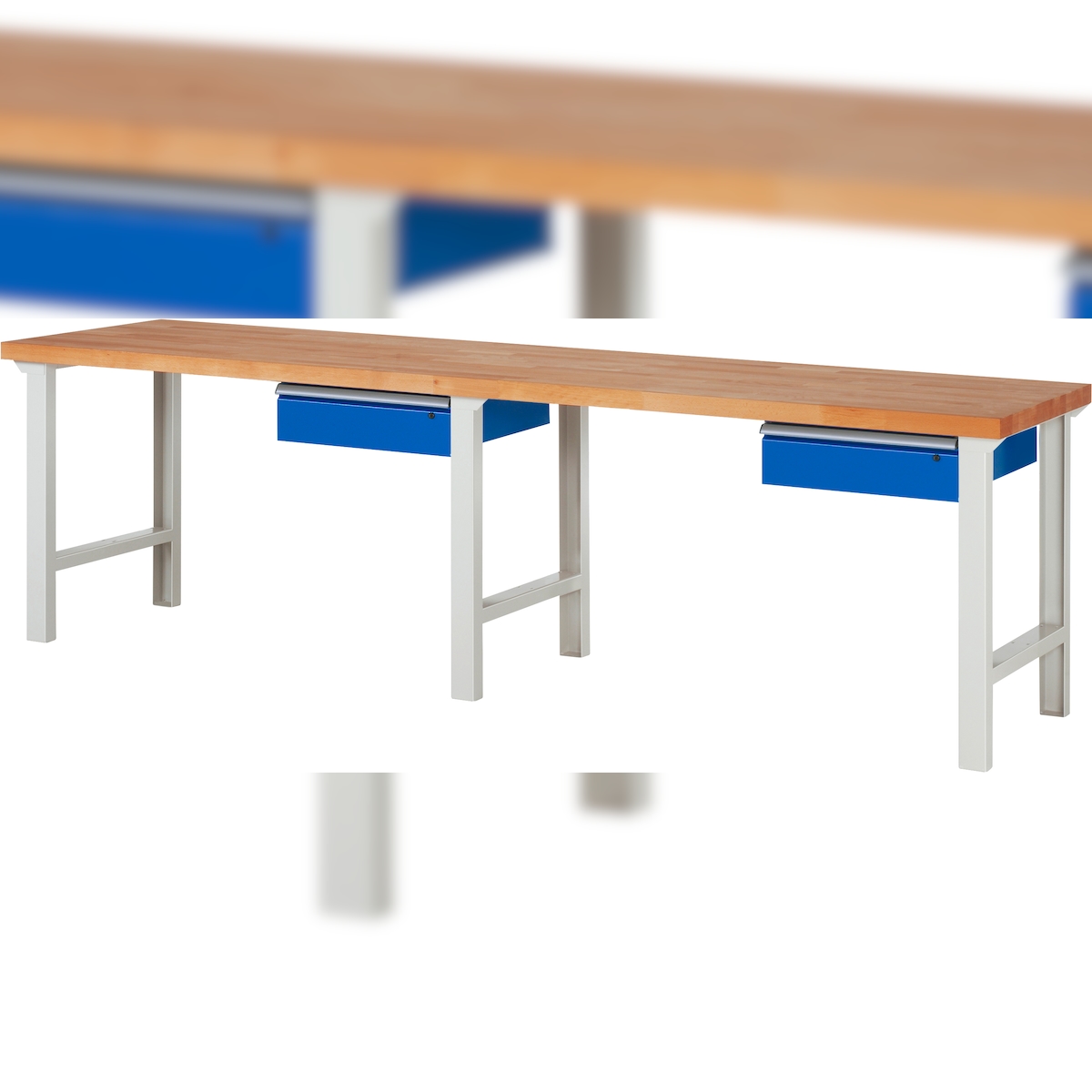 PROREGAL Werkbank Serie 7000 - Modell 7001 | HxBxT 84x300x70cm | 2x Schublade | Schubladenmaße 2x150mm | Lichtgrau | Arbeitstisch Werktisch