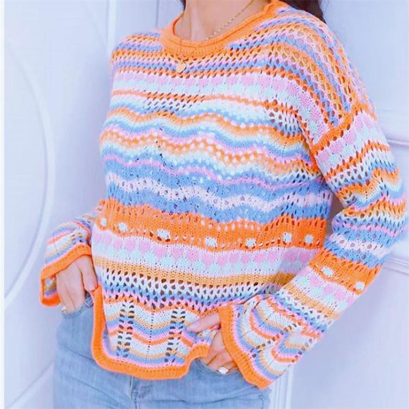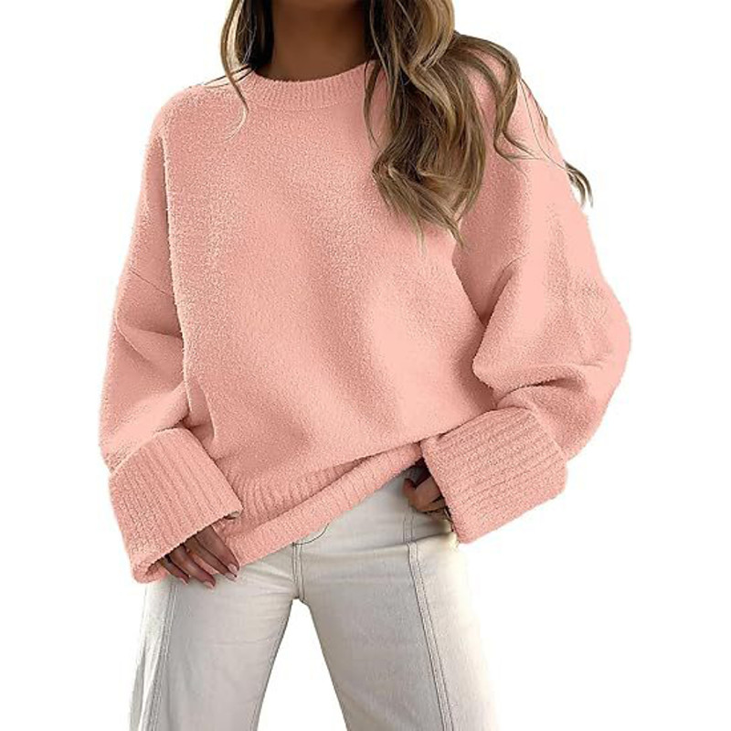 Women's Sweater Casual Soft Pure Color Ribbed Crew Neck Knitted Long Sleeve Regular Tops Knit Outdoor Daily Weekend Orange Khaki Fall Winter