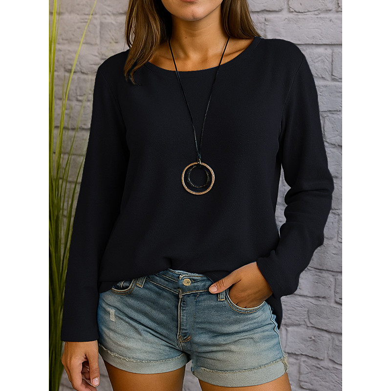 Women's Blouse Plain Stylish Modern Long Sleeve Crew Neck Regular Tops Daily Holiday Black Navy Blue Blue Green Gray Summer Spring Fall